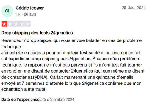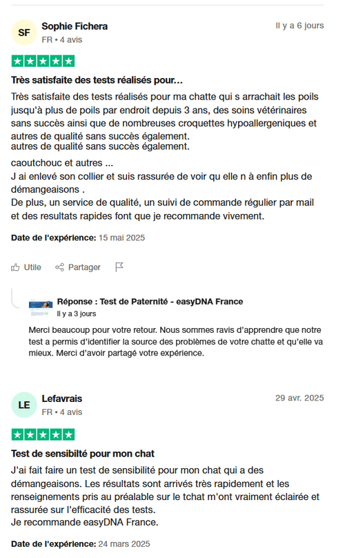 Sur Trustpilot, 87 % des avis concernant EasyDNA sont positifs. Cependant, la majorité de ces retours élogieux portent sur les tests destinés aux animaux. Les utilisateurs sont particulièrement satisfaits de l’efficacité des tests et de la précision des résultats.