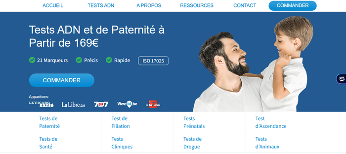 | 🧬 Type de service : Tests ADN filiation + santé + ascendance + animaux + services médico-légaux |