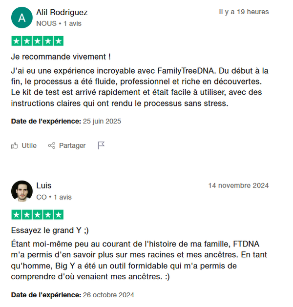 Nous avons apprécié la profondeur des analyses et la clarté des résultats, surtout pour les lignées paternelles ou maternelles anciennes. La conservation prolongée des échantillons et la possibilité d’améliorer les tests ADN offrent une grande souplesse.