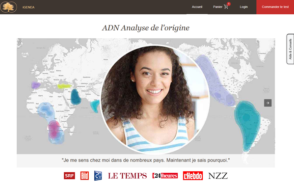 Le site d’iGenea offre une interface épurée. Le menu est clair (Accueil, Shop, Login, Commander un test) pour une prise en main facile.