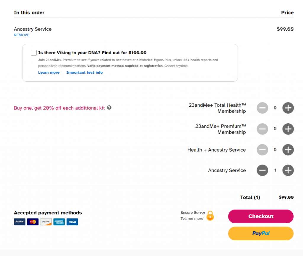 Commandez le kit sur le site officiel de 23andMe. Les paiements acceptés incluent PayPal, Mastercard, American Express et Visa.
