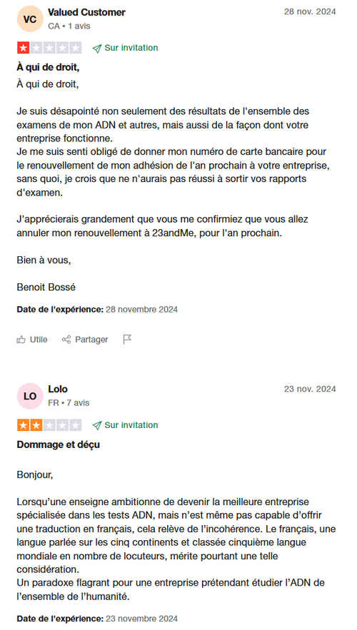 Avis négatifs sur 23andMe