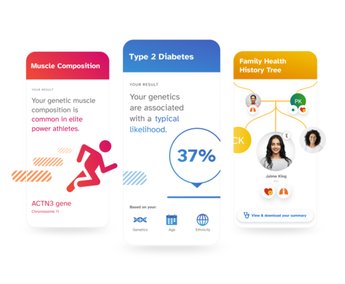Le test Santé + Ascendance de 23andMe combine plus de 150 rapports génétiques personnalisés. Vous y découvrez vos prédispositions héréditaires à des maladies comme le diabète de type 2 ou la maladie d’Alzheimer.