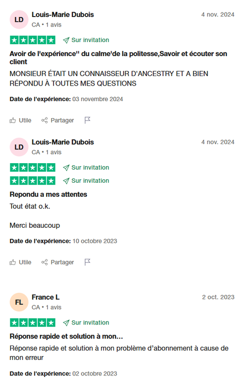 Les utilisateurs saluent la précision des résultats ADN sur leurs origines et notamment la richesse des documents historiques. Plusieurs témoignages mentionnent un service client réactif, courtois et compétent, même pour les demandes techniques ou les erreurs d’abonnement.